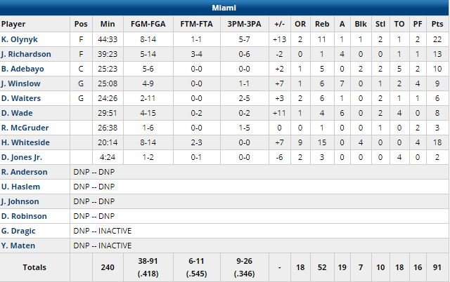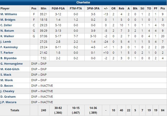 Kemba Walker et Frank Kaminsky ont chacun marqué 20 points pour Charlotte, limité à 36.6% aux tirs. Les deux équipes ont usé de la défense de zone durant ce match et Miami n’a pas été beaucoup plus adroit (41.8%).