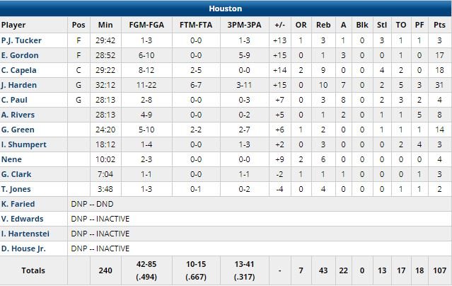 Avec leur trio James Harden (31 points à 11/22, 10 rebonds, 7 passes) – Chris Paul (4 points à 2/8, 8 passes) – Clint Capela (18 points à 8/12 et 9 rebonds) ensemble pour la 30ème fois seulement sur le parquet, les Rockets ont remporté un 7ème match consécutif (meilleure série de la saison cette nuit, 107-91, alors qu’ils étaient opposés aux Sixers, toujours privés de Joel Embiid.