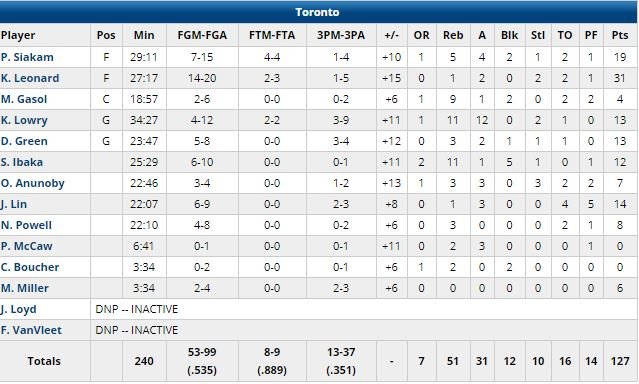 L’équipe, 66 points dans la peinture et 53 (!) en contre-attaque (contre 15) s’est définitivement détachée en fin de 3ème quart et a terminé son match à 54.1% aux tirs. Frank Jackson a terminé meilleur marqueur des Pelicans (qui ont perdu Jahlil Okafor sur une entorse à la pause) avec 20 points devant Julius Randle et ses 18 points et 9 rebonds et Cheick Diallo et ses 16 points et 12 rebonds. Toronto a définitivement mis fin au suspense sur un 9-0 (dont deux 3-points consécutifs de Danny Green) qui a permis aux Raptors de prendre 13 points d’avance, 88-75. L’écart est ensuite monté jusqu’à 21 points sur deux 3-points d’affilée signés Jeremy Lin et Lowry en milieu de 4ème quart.