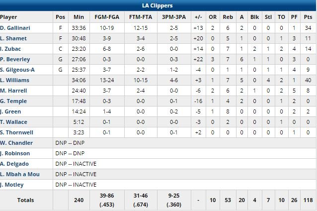 Les Clippers ont décroché leur première série de 4 victoires depuis novembre en battant Oklahoma City cette nuit, 118-110. Lou Wiliams et Danilo Gallinari ont mené l’équipe avec respectivement 40 points (dont 19 dans le 2ème quart-temps, durant lequel L.A. a pris 14 points d’avance) à 13/24, 7 rebonds et 5 passes et 34 points à 10/19 et 6 rebonds. C’est la 28ème fois de sa carrière que Lou Will inscrit au moins 30 points en sortie de banc, tout simplement un record NBA ! (les stats sur les remplaçants ne sont toutefois tenues que depuis 1970-71).