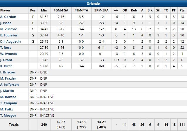 Loin d’être satisfait, le Magic de Terrence Ross (22 points) et Nikola Vucevic (20 points et 13 rebonds) l’a tout de même emporté 111-106 face aux Mavericks cette nuit. Une 11ème victoire en 16 matchs pour les Floridiens, qui ont fait la différence à 3-points (14/29 contre 10/34) face à l’équipe de Luka Doncic (24 points, 8 rebonds), qui s’incline de son côté pour la 4ème fois d’affilée et la 9ème fois en 10 matchs. Absent des playoffs depuis 2012, les hommes de Steve Clifford (9èmes) sont toujours en course.