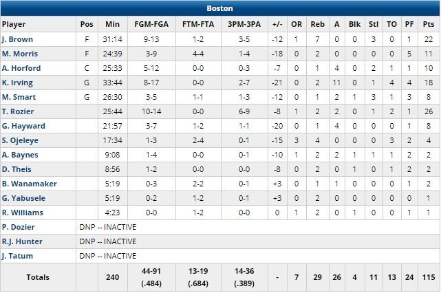 Terry Rozier a terminé meilleur marqueur de Boston avec 26 points, devant Jaylen Brown (22) et Kyrie Irving (18). L’équipe restait sur 3 victoires d’affilée avant ce match. Gallinari a marqué 13 des 25 premiers points de son équipe (devant 25-19 après 12 minutes de jeu), les Celtics sont revenus à 3 points sur un tir primé de Rozier en début de 2ème puis l’équipe a encaissé un 9-0 qui a permis aux Clippers de se détacher 34-22 à 9’55 de la mi-temps. Irving a rapproché les siens à 46-42 avec 5 points durant un 8-3 mais un autre 9-0 adverse est venu redonner 10 points d’avance aux locaux, en tête 62-49 à la pause.
