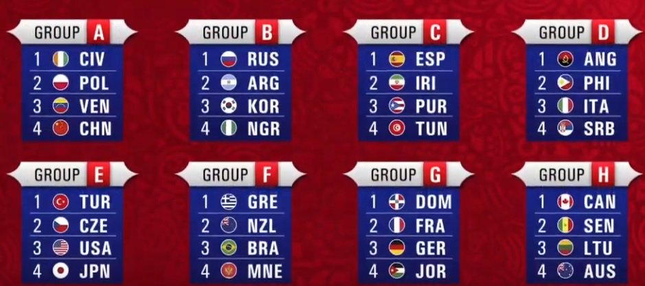 Les deux premiers de chaque groupe seront qualifiés pour le second tour. Les deux premiers de chacun de ces nouveaux groupes formés, iront en quart de finale. Les bleus croiseront justement avec le groupe H, groupe de la mort avec Australie, Canada, Lituanie et Sénégal.