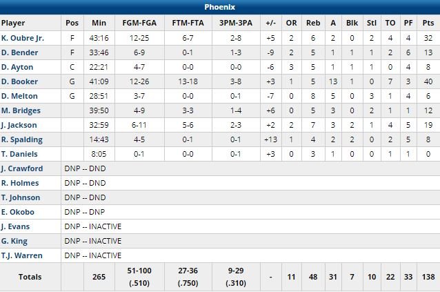 And just like that, Phoenix wins ! 138-136 (5ème victoire en 8 matchs), 40 points à 12/26, 5 rebonds et 13 passes de Devin Booker, 32 points à 12/25 et 6 rebonds de Kelly Oubre Jr., et on n’oublie pas les remerciements à Alvin Gentry ! Côté Pelicans, Elfrid Payton a signé son 4ème triple-double d’affilée ave 16 points, 13 rebonds et 16 passes ! Julius Randle a lui terminé à 21 points et 11 rebonds mais a aussi manqué un lancer-franc important à 12 secondes de la fin en prolongation.