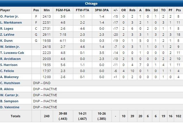 À noter les 11 points à 4/8 et 1 passe de Timothé Luwawu-Cabarrot en 22 minutes pour Chicago.