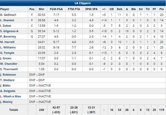 Autour de lui, Danilo Gallinari a signé 20 points et 11 rebonds, Montrezl Harrell 20 points et 10 rebonds, Shai Gilgeous-Alexander 14 points et 10 passes. En face D’Angelo Russll a terminé à 32 points et 10 passes, Carroll 22. En tête 46-27 à 8’07 de la mi-temps, ils ont subi un 33-9 (11/14 aux tirs) sur les 8 minutes suivantes et à la pause, L.A. était devant 60-55. Un 3-points de Landry Shamet avait ensuite donné 11 points d’avance aux locaux mais les Nets avaient recollé à 87 partout à l’entame du 4ème.