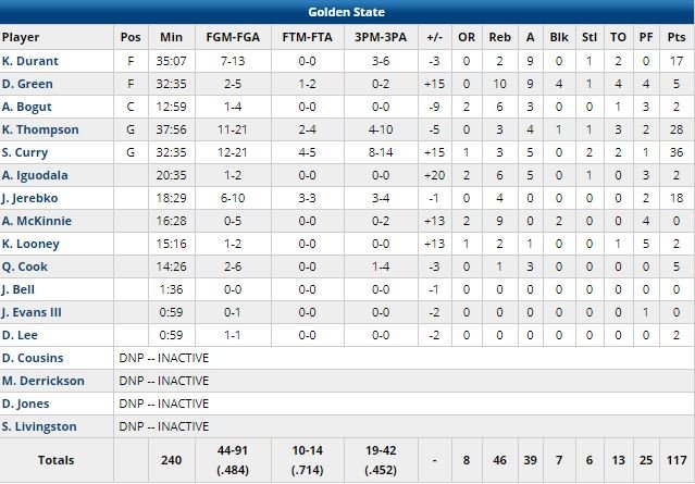 Sauf que les Warriors ont trouvé le moyen de leur infliger un 21-3 sur les quasiment 6 minutes suivantes pour prendre le contrôle à coup d’adresse longue distance. Jerebko a marqué 14 points dans le 2ème quart dont deux 3-points pour aider les Warriors à se placer en tête 59-47 à la pause. Les locaux sont revenus à égalité 61 partout sur un 3-points d’Okogie mais les hommes de Steve Kerr n’ont ensuite eu besoin que de 3 minutes et 18 secondes pour leur passer un 14-1 (8 points de Curry). Les champions ont démarré le dernier quart devant 91-75 avant de se relâcher dans le 4ème, dominé 32-26 par Minnesota.