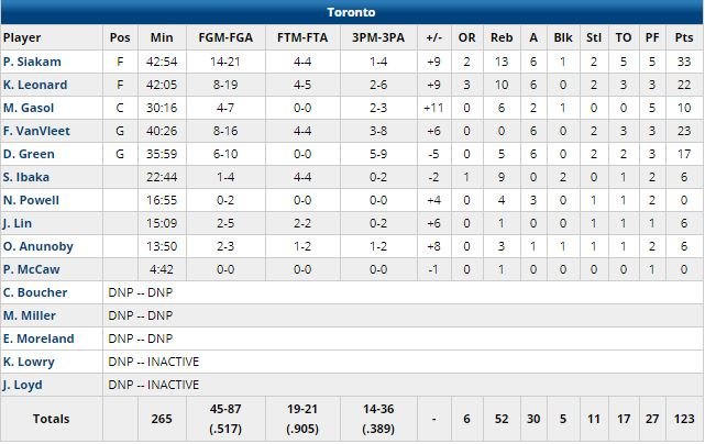 Round 1 pour les Raptors ! Toronto a gagné le 1er d’une série de 2 matchs en 3 jours contre le Thunder cette nuit, 123-114 en prolongation à Oklahoma City, porté par les 33 points et 13 rebonds de Pascal Siakam et les 23 points et 6 passes de Fred VanVleet. L’équipe, sans Kyle Lowry (cheville) mais avec Kawhi Leonard (22 points et 10 rebonds) a mené de jusqu’à 20 points dans ce match avant de subir le comeback de Russell Westbrook (42 points à 16/29, 11 rebonds, 6 passes) – de retour de suspension – et de son équipe. Pour le Thunder c’est une 4ème défaite d’affilée et une 10ème en 14 rencontres.