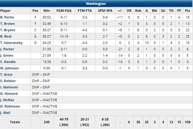 De quoi rester sur les talons des Warriors, toujours 1ers à l’Ouest grâce au tiebreaker. Bradley Beal a terminé à 25 points (10/19, 8 passes) dans ce match pour les Wizards (3ème défaite d’affilée), devant Thomas Bryant et ses 22 points pour sa première titularisation en un mois et Tomas Satoransky et ses 16 points et 10 passes. Après que les deux équipes aient lâché des avances de 10 points dans le 3ème quart-temps, Denver est repassé à +10 en début de 4ème quart.