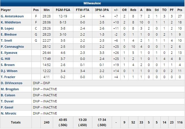 En début de 2ème quart, Antetokounmpo est tombé à terre en compagnie de plusieurs joueurs après avoir volé une passe de Goran Dragic. Le Grec s’est dirigé vers le banc en boitant puis est revenu en jeu quelques minutes plus tard.