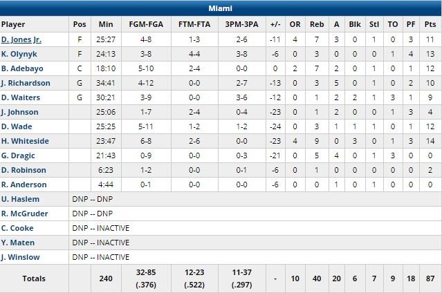 Khris Middleton (qui a aussi donné son maillot à Wade qui lui a ensuite fait parvenir l’un des siens dans le vestiaire) a signé son 3ème double-double d’affilée (record en carrière) avec 18 points et 10 passes. Devant 63-51, George Hill a rentré un 3-points pour donner 11 points d’avance aux Bucks en milieu de 3ème quart puis l’écart est doucement monté à 25 points.