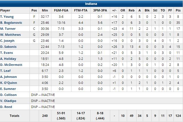 Les Nuggets ont pris une sérieuse gifle à Indianapolis cette nuit, 124-88 ! Bojan Bogdanovic, 26 de ses 35 points (13/16, 5/6 à 3-points, le tout en seulement 25 minutes de jeu !) en 1ère mi-temps, a même pu regarder la fin du match sur le banc. Une victoire qui fait du bien aux Pacers (45-29) après 4 défaites d’affilée à l’extérieur. Myles Turner a ajouté 17 points et 11 rebonds, Domantas Sabonis 15 points et 13 rebonds.