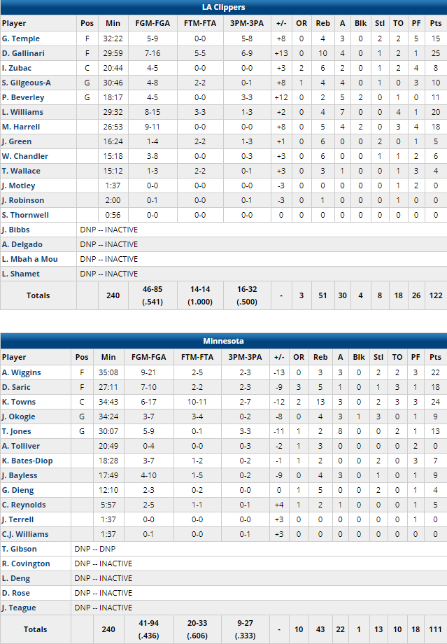 Minnesota Timberwolves – Los Angeles Clippers 111-122