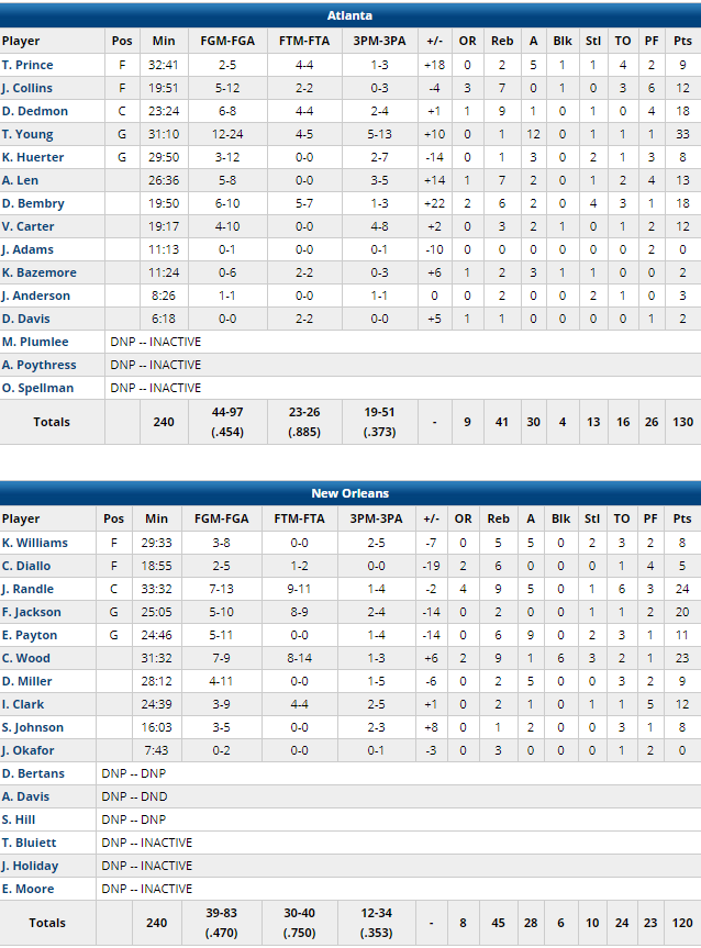 New Orleans Pelicans – Atlanta Hawks 120-130