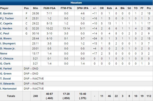 Houston est monté à +22 au début du 4ème puis un 5-0 avec un 3-points d’Haden a porté le score à 102-78 à 5 minutes de la fin. D’Antoni a vidé son banc à 3 minutes et demi de la fin après que l’équipe (devant de jusqu’à 30 points) ait transformé le 5-0 en 10-0. Battus 108-94 par Milwaukee, l’équipe se reprend et reste sur 3 victoires en 4 matchs.
