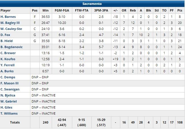 C’est une 4ème victoire en 5 matchs pour Houston, également aidé par les 22 points et 5 passes de Chris Paul. Côté Kings (2ème défaite d’affilée), devant de 3 points à la mi-temps et de 2 points à l’entame du 4ème, c’est Bogdan Bogdanovic qui a terminé meilleur marqueur avec 24 points. Harden est aussi devenu le 9ème joueur de l’histoire à atteindre les 9000 tirs à 3-points en carrière.