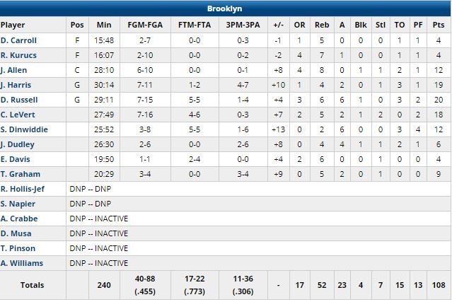 Indiana aura mené 2 fois dans ce match, sur un 3-points de Myles Turner puis sur un autre de Wesley Matthews dans le 1er quart-temps. Russell a répondu au 2ème tir par un shoot à moins de 3 mètres et les Nets n’ont plus jamais perdu l’avantage ensuite. Devant 31-25 après 12 minutes de jeu, ils menaient 52-44 à la pause et ont bouclé le 3ème quart sur un 7-0 (82-69) avant de filer vers la victoire.