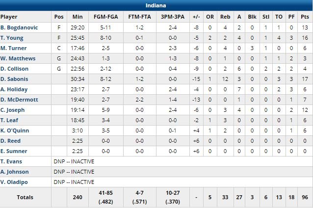 Plus physiques et agressifs que leurs adversaires, les Nets ont marqué les 9 premiers points du match en forçant au passage 3 ballons perdus avant un temps-mort d’Indiana moins de 2 minutes après le début du match. Les Pacers ne s’en remettront pas. D’Angelo Russell a terminé meilleur marqueur des siens avec 20 points (7/15, 6 rebonds, 6 passes), devant Caris LeVert et ses 18 unités (7/16, 5 rebonds). Avec 2 défaites d’affilée à domicile et 5 sur 7 en tout, Indiana (mené par les 17 points et 12 rebonds de Domantas Sabonis et les 16 points de Thaddeus Young) est désormais sûr de finir 5ème et donc d’affronter Boston au 1er tour des playoffs.