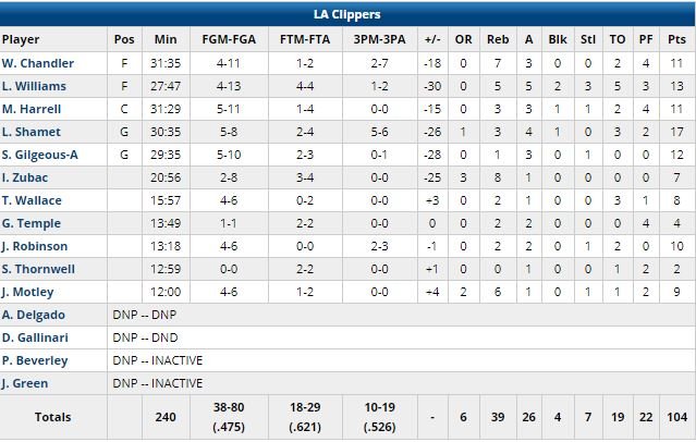 Draymond Green a manqué un tripe-double de peu avec 10 points, 10 rebonds et 9 passes dans cette 7ème victoire en 8 rencontres. DeMarcus Cousins, gêné par les fautes, a ajouté 12 points, 9 rebonds et 4 passes. Sans Patrick Beverley (hanche), les Clippers ont été menés par les 17 points (5/6 de loin) de Landry Shamet et se retrouvent désormais à la 8ème place de la conférence Ouest avec une 3ème défaite d’affilée. Les Warriors ont rentré 10 de leurs 13 premières tentatives à 3-points. Menés de jusqu’à 4 points dans le 2ème quart-temps, ils sont ensuite montés jusqu’à +33 après un 42-18 dans le 3ème quart-temps.