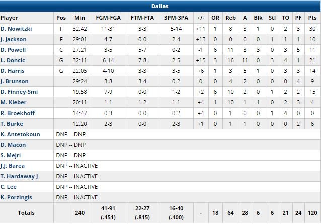 Pour sa dernière à domicile (il l’a annoncé après le match), Dirk Nowitzki a fait les choses bien avec un record en saison de 30 points (11/31, 5/14 à 3-points), 8 rebonds et 3 passes en 34 minutes dans la victoire 120-109 des Mavericks sur Phoenix mardi soir. Le 6ème meilleur marqueur de l’histoire et 14 fois All-Star a pris les 8 premiers shoots de Dallas et marqué les 10 premiers points de son équipe dans les 3 premières minutes. Son précédent record en saison était de 21.