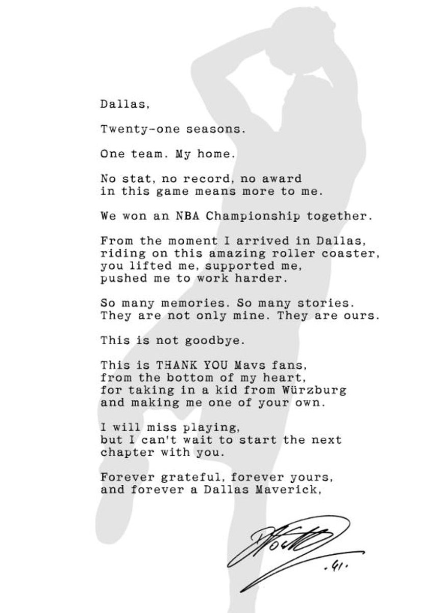 La lettre de Dirk Nowitzki pour remercier les fans des Dallas Mavericks