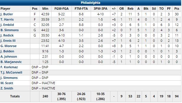 Auteur de 10 points à 4/12 dans le Game 1, il a marqué 12 de ses 30 points dans le dernier quart-temps pour aider les Sixers à résister au retour de locaux. À ses côtés 4 autres joueurs ont atteint les 10 points dont Joel Embiid malgré sa gastro (12 points à 2/7, 6 rebonds et 5 passes en 32 minutes) et James Ennis III (13 point à 4/10 et 6 rebonds).
