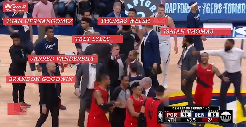 There won’t be any additional disciplinary action taken (suspensions, etc) for the scuffle late in Game 2 between the Nuggets and Blazers, per a league source. Players left the bench area, but it was during a timeout, which doesn’t fall into the rule.
