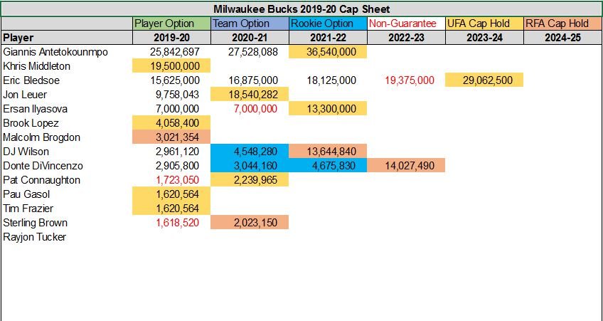 Free agents : Khris Middleton (UFA), Brook Lopez (UFA), Malcolm Brogdon UFA), Pau Gasol (UFA), Tim Frazier (UFA), Pau Gasol (UFA), George Hill (UFA), Nikola Mirotic (UFA)