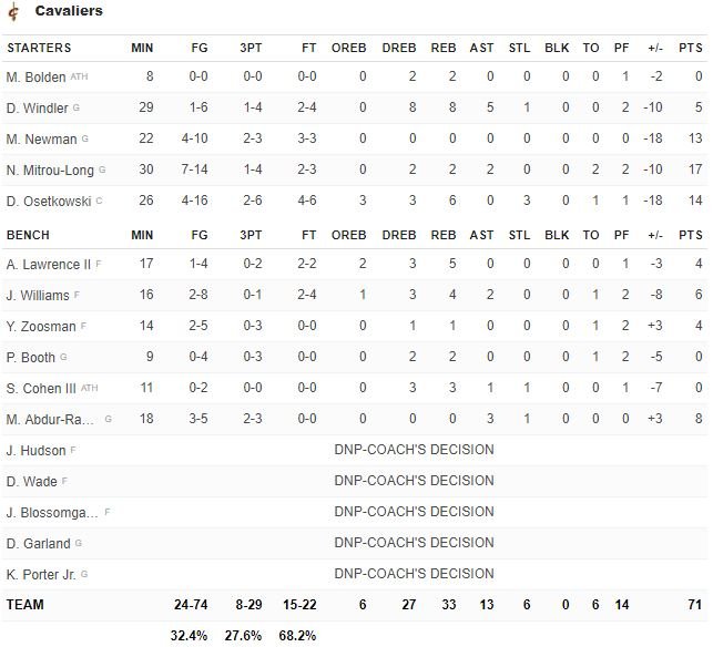 Tony Bradley a marqué 26 points à 9/13, pris 16 rebonds et bloqué 3 tirs dans le succès du Jazz sur les Cavs et enfin Miami s’en est sorti de justesse en réussissant le comeback face aux Kings (13 points de Kyle Guy) avec 27 points de Kendrick Nunn.