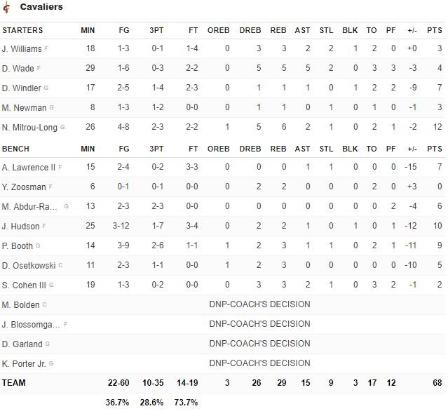 Cleveland Cavaliers – Memphis Grizzlies 68-81