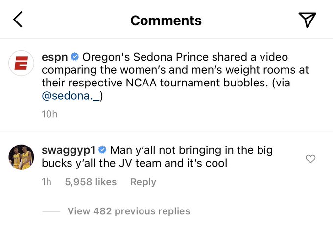 Absent des parquets depuis 2018 et quatre petits matchs aux Nuggets, Nick Young refait parler de lui, mais pas pour les bonnes raisons. Tout est parti d’une vidéo de la joueuse d’Oregon Sedona Prince, qui participe à la March Madness et qui dénonçait l’attitude scandaleuse de la NCAA concernant les installations des salles de musculation pour les équipes masculines et féminines, et le traitement de ces dernières.