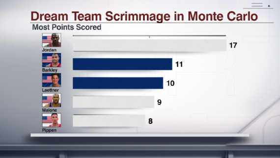 Les scoreurs selon Jack McCallum, qui était présent en tribune et qui raconte ça dans son livre Dream Team