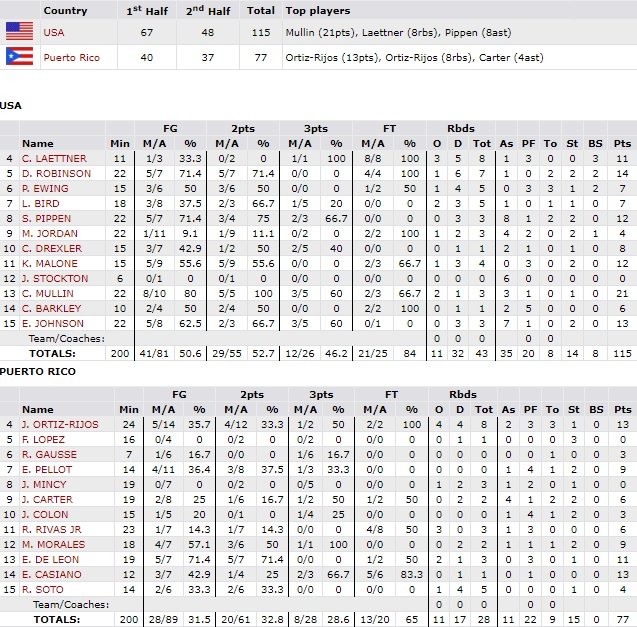 4 août 1992, après avoir écrasé tour à tour l’Angola, la Croatie, l’Allemagne, le Brésil et l’Espagne, par un écart moyen de 45.8 points, la Dream Team affrontait Porto-Rico en quart de finale. Forcément ça n’avait posé aucun souci à Michael Jordan et ses coéquipiers.