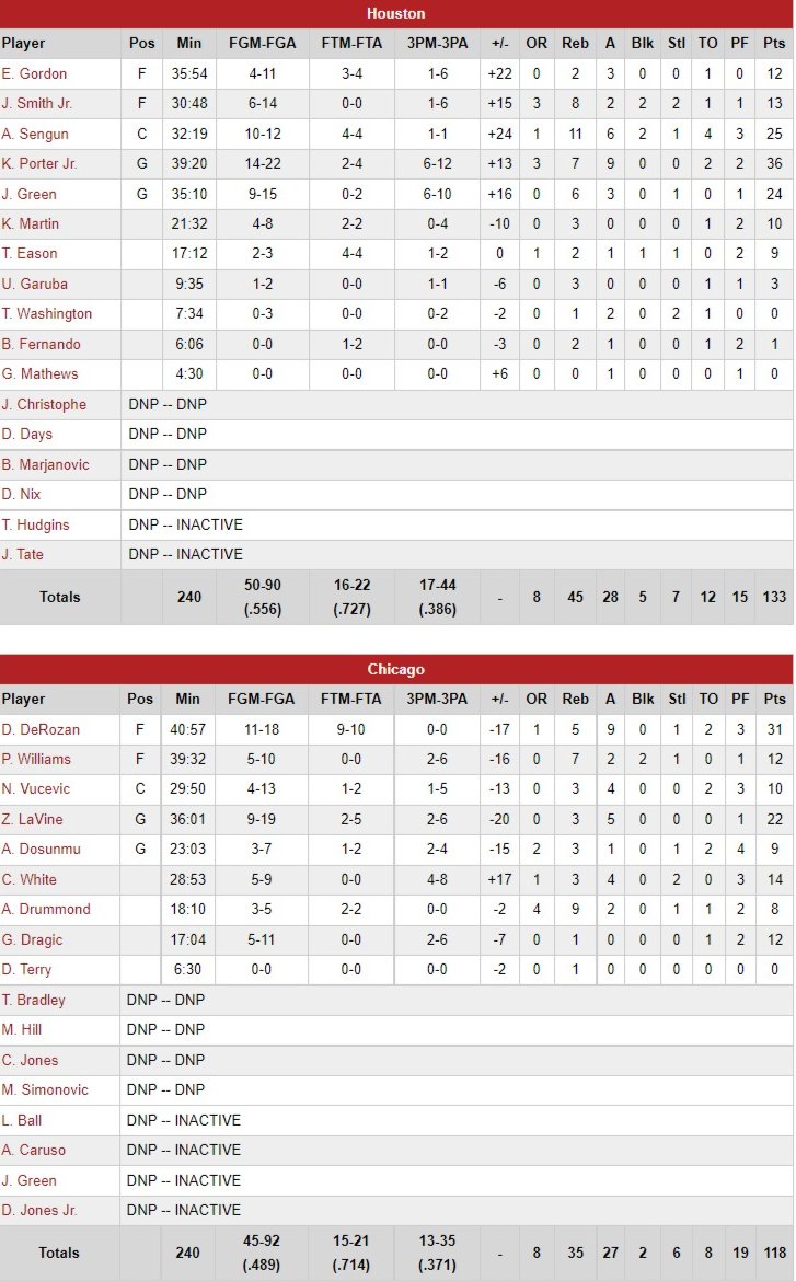 En visite à Chicago, les Rockets de Kevin Porter Jr. (36 points) se sont imposés 133-118 à la faveur d’un 17-1 décisif dans le 3e quart. Les Spurs avec 24 points de Devin Vassell et 21 points de Keldon Johnson et malgré 7 points encaissés en 33 secondes en fin de rencontre ont résisté au retour du Jazz de Lauri Markkanen (32 points) alors que Portland a sorti une grosse 2e mi-temps pour se débarasser des Hornets. Jerami Grant signe 32 points (9/19, 9 rebonds, 5 passes), Jusuf Nurkic 28 points à 8/12, 15 rebonds, 6 passes et 3 contres.