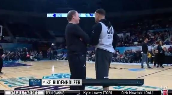 Read MoreMoment intéressant entre Stephen Curry et Mike Budenholzer lors de l’entraînement des All-Stars à Charlotte. Le meneur des Warriors a