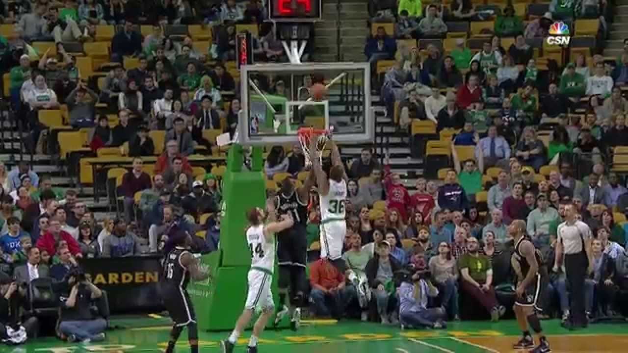 Marcus Smart bondit pour la superbe claquette à deux mains !