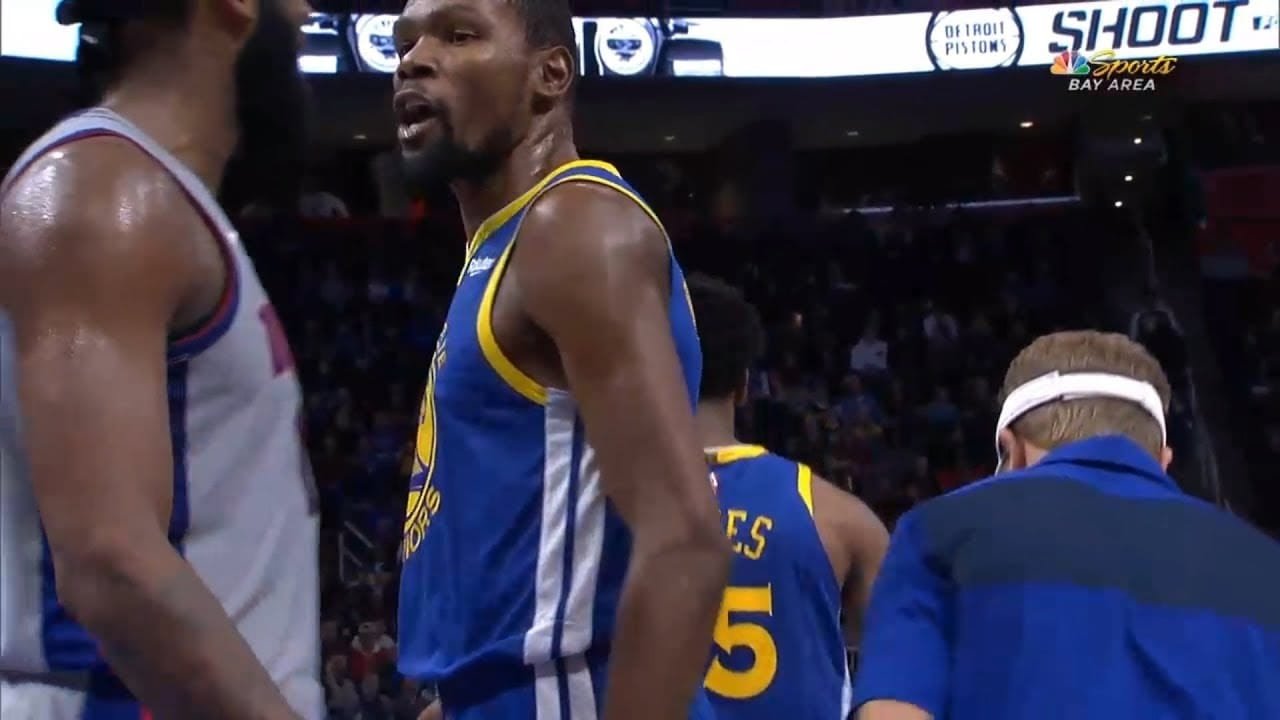 Read MoreKevin Durant est allé glisser quelques mots à Andre Drummond après une tenative de poster de Damian Jones sur le