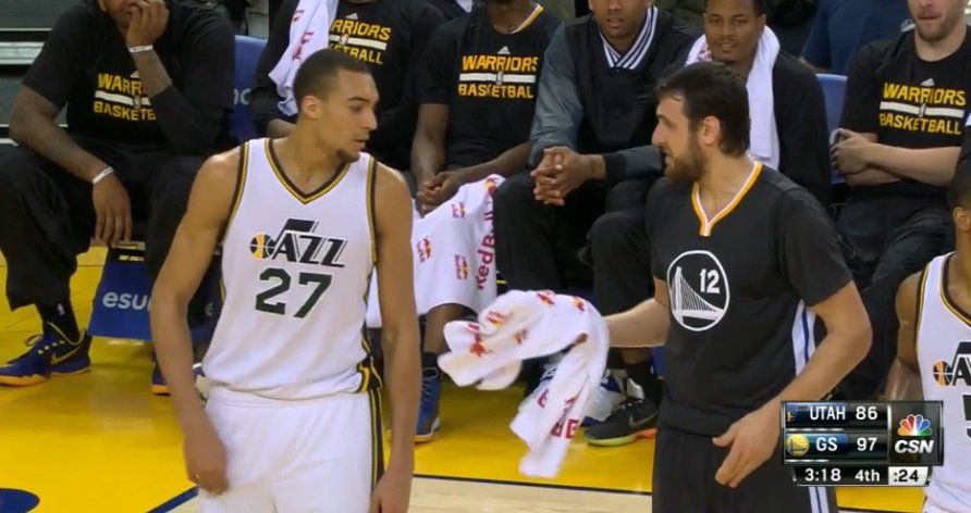 Read MorePetite scène sympa entre le vétéran et la jeune pousse C’est dégueulasse de partager une serviette https://twitter.com/andrewbogut/status/579535564707266560 Rudy Gobert a