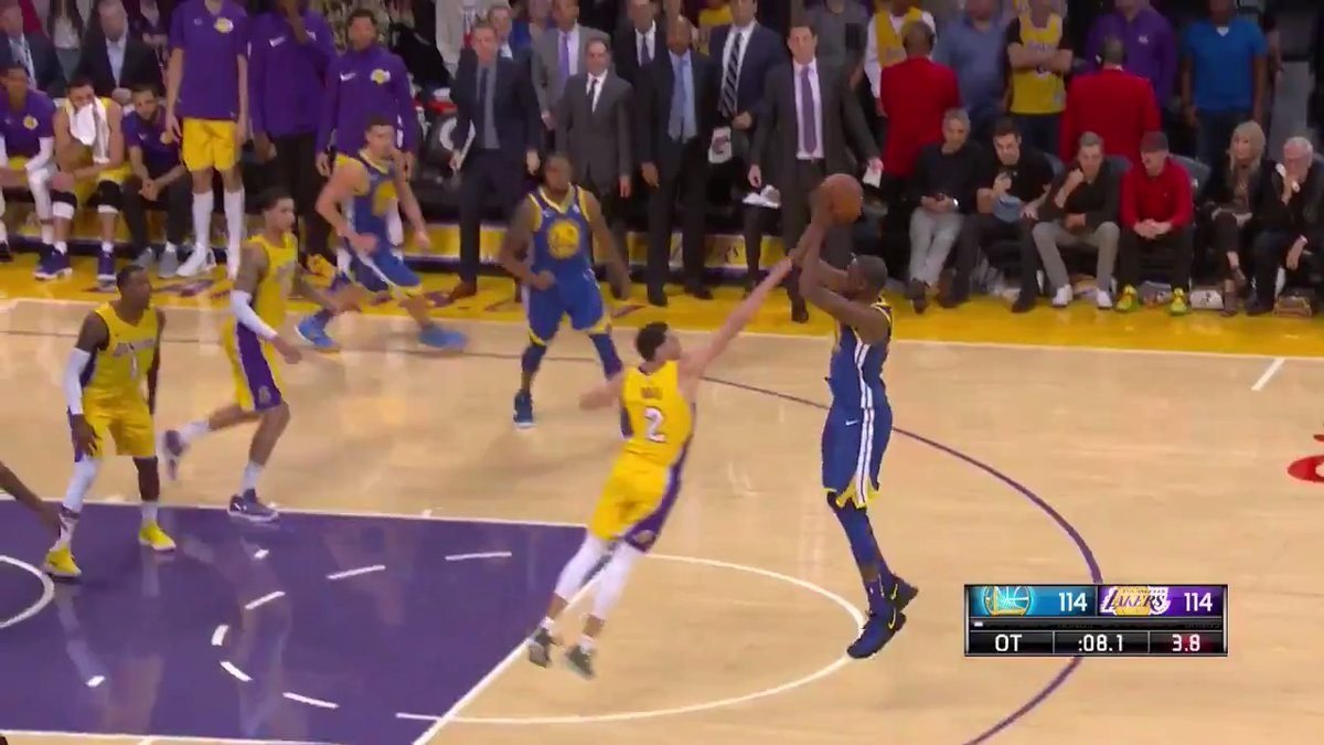 Read MoreKevin Durant a crucifié les Lakers en prolongation sur ce shoot : KD CALLED GAME!#DubNation pic.twitter.com/TKnSPRDEyX — NBA (@NBA) December
