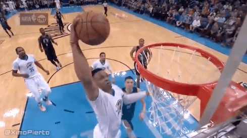 La passe géniale de Russell Westbrook pour le dunk renversé de Kevin Durant !