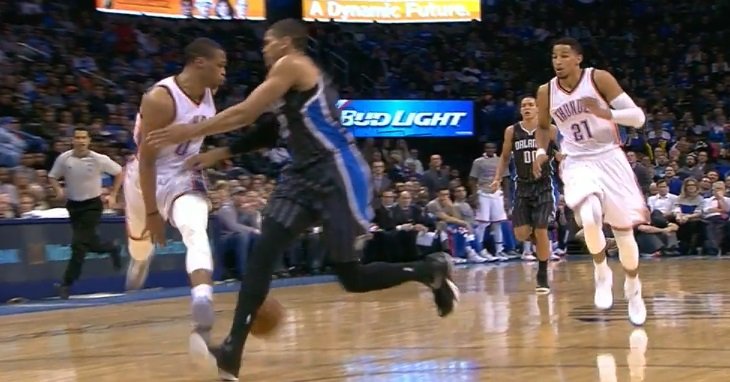 Russell Westbrook se débarasse de Monta Ellis avec une facilité déconcertante mais n’oublie pas ses coéquipiers :