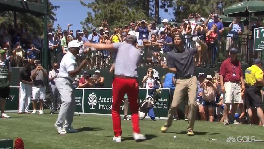 Présent à l’American Century Championship, tournoi de gold pour célébrités, Stephen Curry faisait équipe avec Justin Timberlake et Alfonso Ribeiro, connu