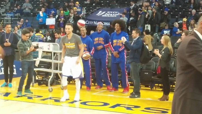 Stephen Curry met E’Twaun Moore à 4 pattes